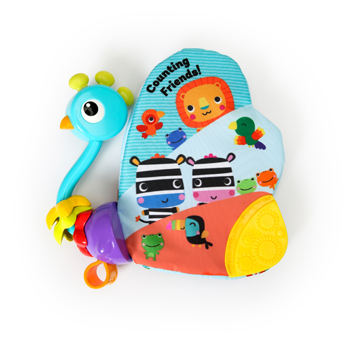 ビーズチェイサーや歯固めにもあるとりの形をした持ち手に布製絵本が付いています。