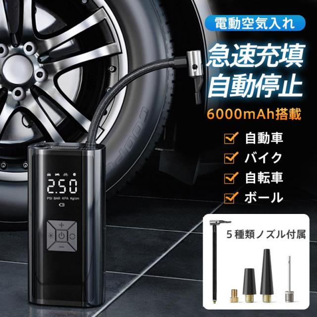 電動空気入れ 空気入れ 自動車 自転車 バイク ボール 浮き輪 USB充電式 エアーポンプ 急速充填 LEDライト 仏式 米式 自動停止 空気充填
