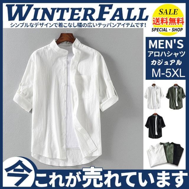 アロハシャツ シャツ 開襟シャツ メンズ ボタンダウン カジュアル 通勤 薄手 白シャツ 無地 綿麻 大きいサイズ トップス カジュアルシャツ 半袖