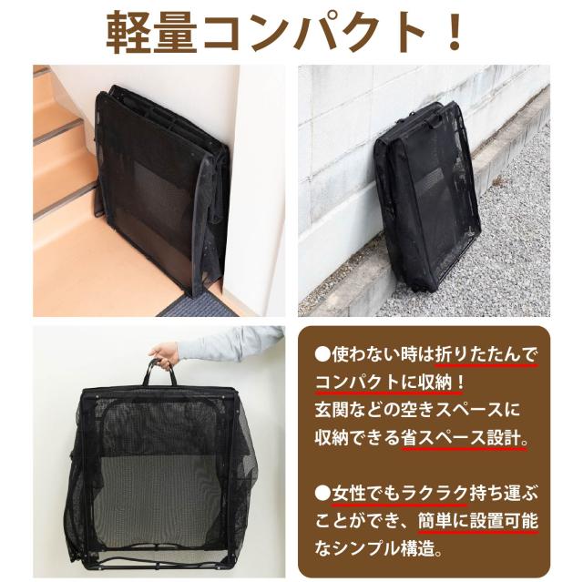 4箇所のフレームの開くだけの簡単組み立てですぐに設置が可能です。折りたたみタイプなので保管時も省スペースでかさばりません!