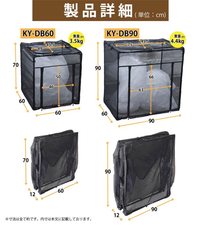 カラスよけ ゴミネット ストレージボックス 大サイズ 容量363L カラス対策 スチール製 折りたたみ ゴミ箱 大容量 屋外用 戸別収集対応 折りたたみ式 ゴミ網 小動物対策 ブラック ガレージや裏庭に最適 KY-DB90