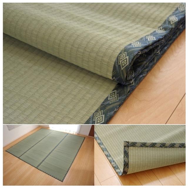 ■こちらの商品は畳表と同じ織り方の糸引織で仕上げました。双目織りと比べて、い草の打ち込み本数が多いため丈夫です。表面が滑らかなので、ホコリなどがたまりにくいのが特徴です。長くご使用されたい方や、耐久性をお求めの方には糸引織をおすすめします。