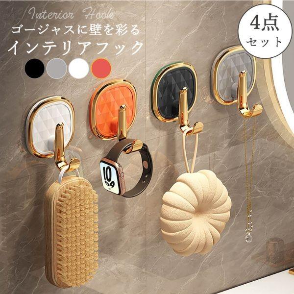 ウォールフック おしゃれ 賃貸 インテリア 壁掛け 収納 洗面台 リビング キッチン クローゼット 寝室 壁を傷つけない 粘着テープ式 4点セット 送料無料 即納