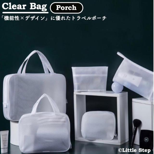 ・特徴:半透明なトラベルポーチ。EVA素材を使用し、防水に優れているだけでなくサッとにずに流してお手入れができるので衛生的です。半透明使用なので中身が確認出来つつ、プライベートもしっかりと保護します。