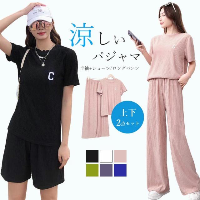 ルームウェア レディース セットアップ 夏 半袖 パジャマ レディース 春 夏 半袖 パンツ ルームウェア 上下セット ウエストゴム 上下セット パジャマ ゆったり 大きいサイズ リラックス 寝間着 春夏