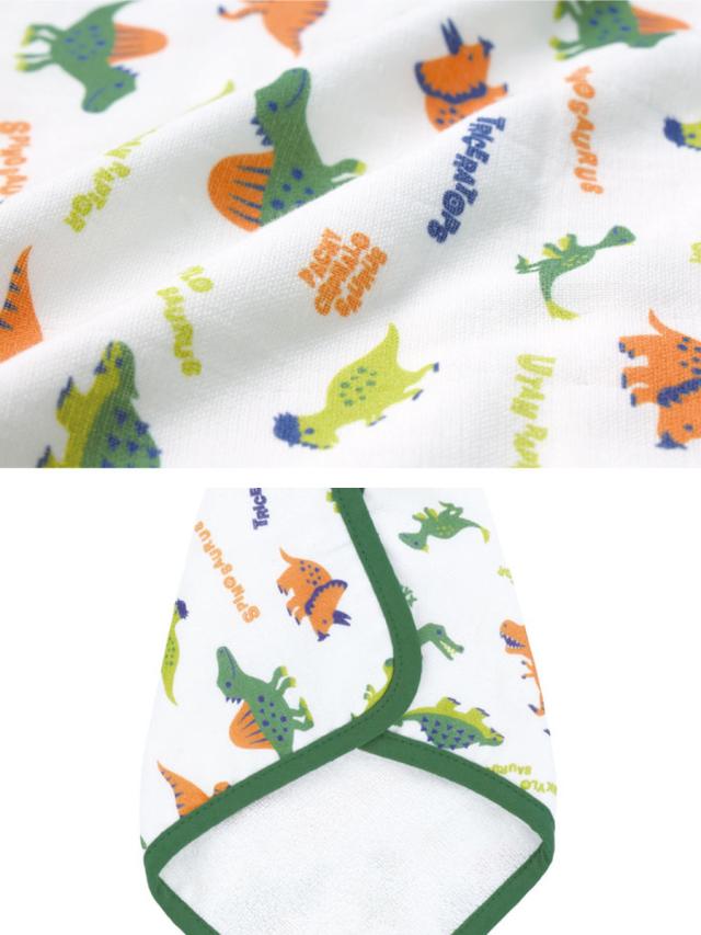 表地にはふんわりやわらかなガーゼを、裏地には吸水性に優れたパイル生地を使用しています。洗濯してもすぐに乾くので清潔を保ちやすいです。