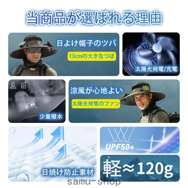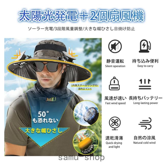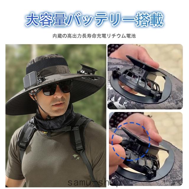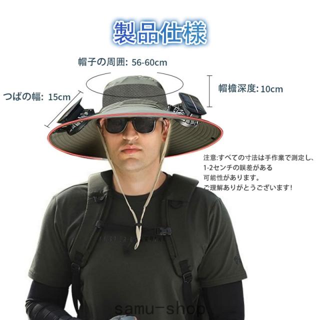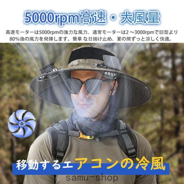 扇風機付き帽子 日除け帽子 メンズ 調節可能な頭囲 ファン付きハット ファン帽子 uvカット帽子 つば広帽子 サンバイザー軽量 通気性 夏用 おしゃれ メンズ レディース