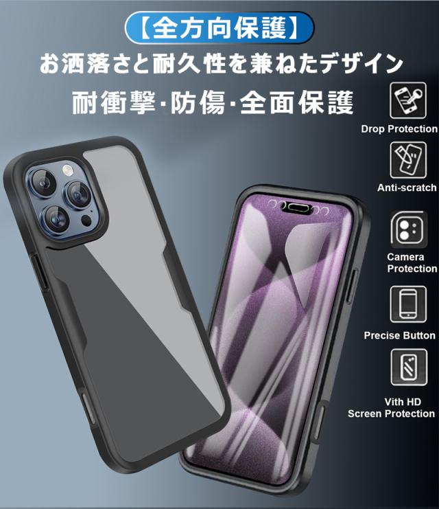 iPhone 14 Pro ケース 全面保護 iPhone 11 ケース iPhone 14ProMax 13ProMax 12ProMax ケース シンプル iPhone 13 Proケース iPhone 12Pro iPhone 14Plus スマホケース 透明バック 液晶保護フィルム 衝撃吸収 嵌め込み式 傷防止 iPhone11ProMax ケース 前後両面カバー