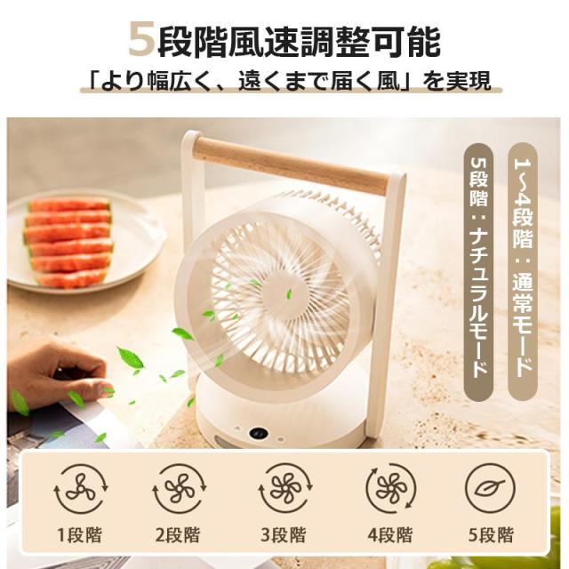 扇風機 卓上 デスクファン 角度調節 ライト付き 5段階風量調節 静音 USB式 卓上扇風機 dcモーター 空気循環 充電式 大容量パッテリー セール 2025 夏 プレゼント