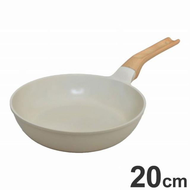 フライパン 20cm IH対応 セラミックコート PFOAフリー セラミックコーティング セラミック ホワイト WH 木柄 ナチュラル(代引不可)