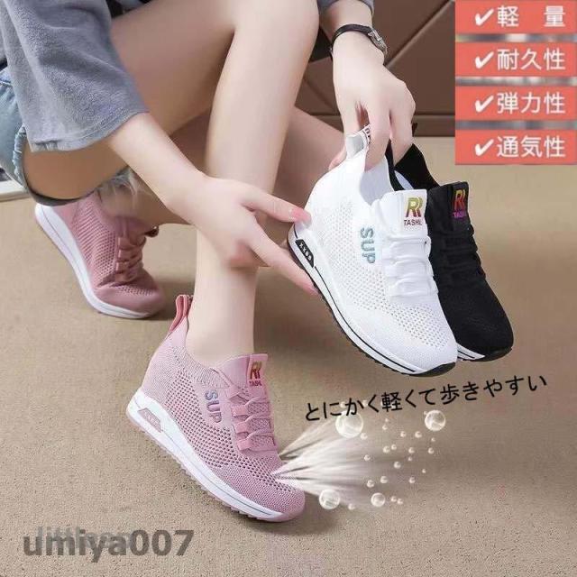スニーカー 6cm ウェッジソール カジュアルシューズ 厚底スニーカー ハイカット インヒール 厚底 編み上げ