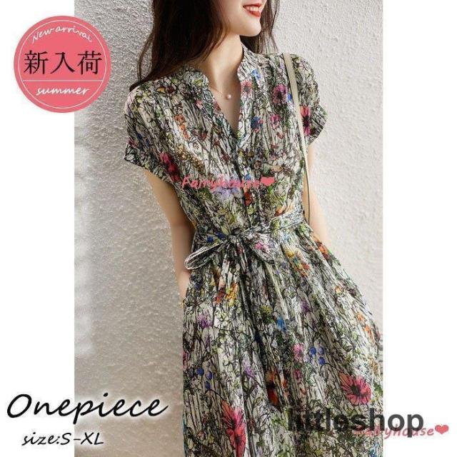 【連携キーワード】:シャツワンピース レディース 40代 きれいめ 膝丈ワンピース 春夏新作 半袖ワンピース 花柄プリント aラインスカートオシャレ韓国風 大人 ゆったり 30代 50代