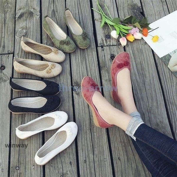 チャイナ靴 スニーカー フラットシューズ パンプス 履きやすい 綿麻混 チャイナシューズ 布靴 民族風 花刺繍 ダンスシューズ 通気性優 nx0031