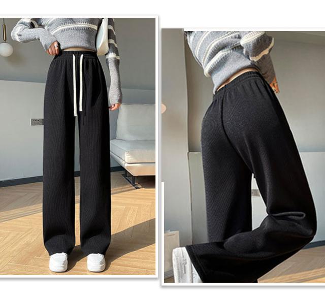 裏起毛ワイドパンツ レディース リブ ボア ガウチョパンツ ボトムス ウエストゴム ロングパンツ カジュアル