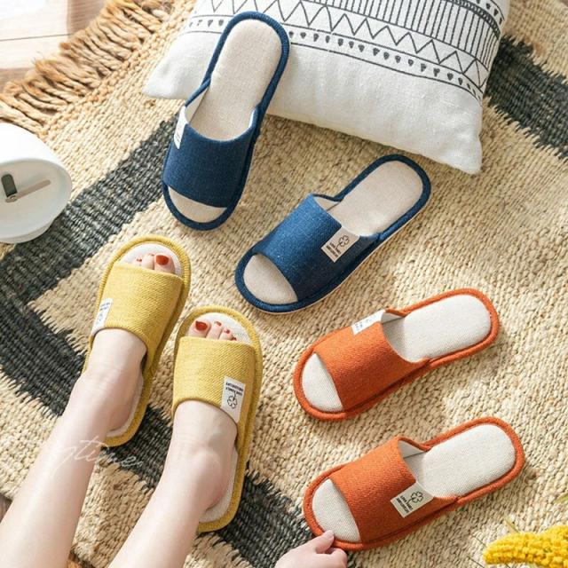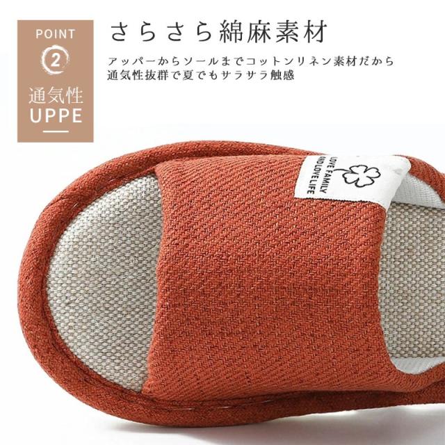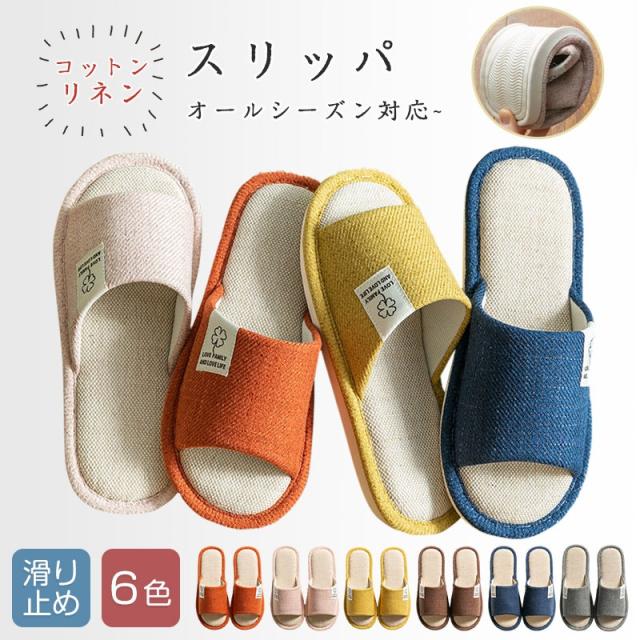 【即納】ルームシューズ スリッパ 室内 夏用 コットンリネン 前開き ルームスリッパ 夏 春 秋 冬用 通気性 軽量 柔らか 滑り止め 男女兼用 室内 外履き 来客用 ビーチサンダル レインブーツ フラットサンダル レディース ローヒール シンプル