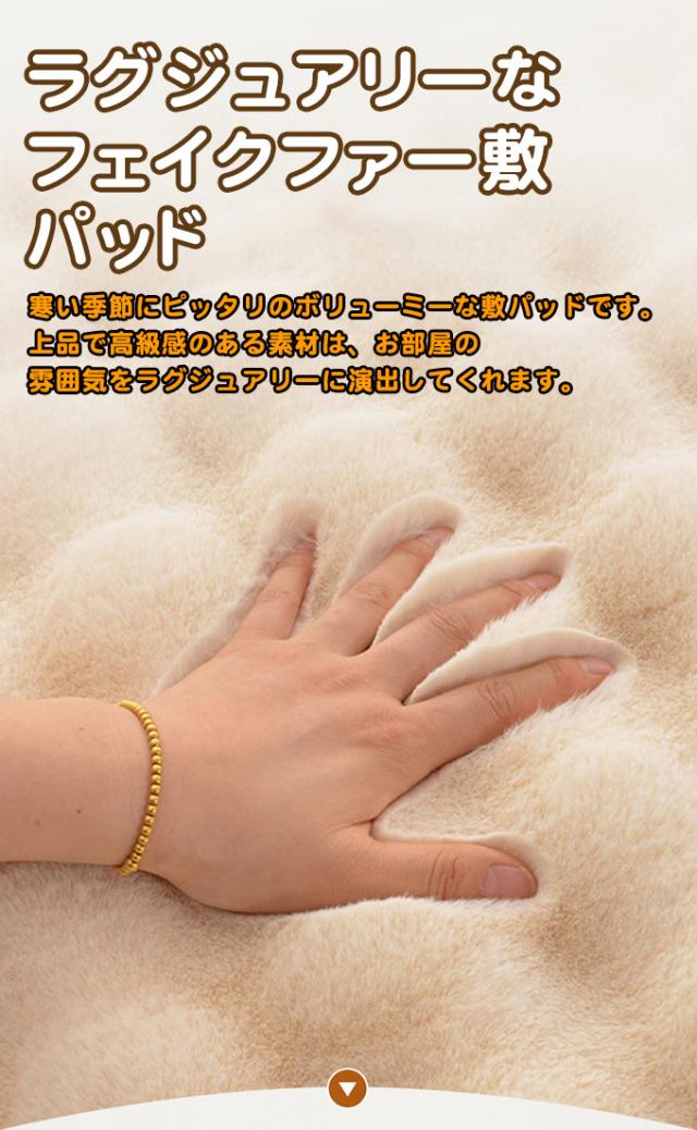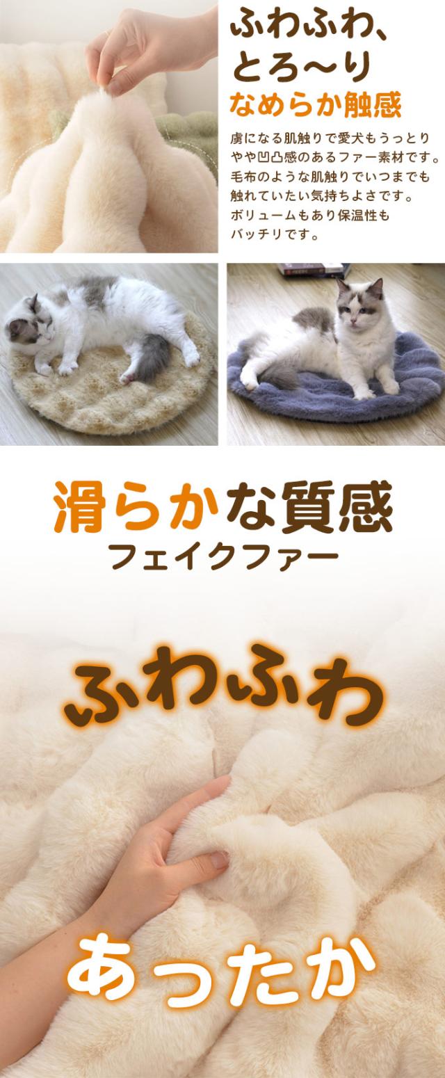| コメント | ねこちゃんワンちゃんの冬支度♪ 滑らかな質感のフェイクファーの敷きマットです。 可愛いあったか冬用マット。 ふわふわで柔らかく、暖かい冬用ペットマットです。 お手入れ簡単でいつでも清潔に保つことができます。 ※モニター環境により多少色合いが異なりますので、予めご了承くださいませ。 | ||||||||||