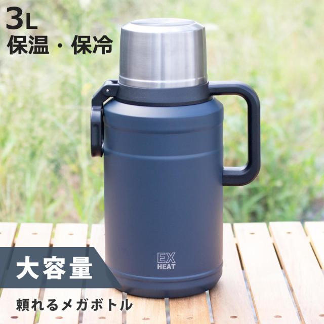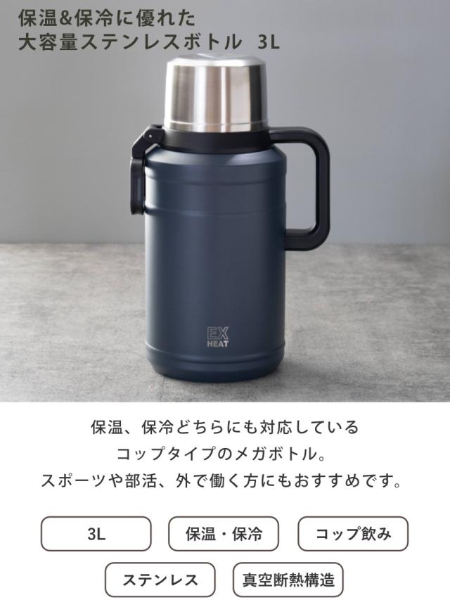 水筒 3L エクスヒート メガボトル3000 ステンレス 保温保冷 ( 保温 保冷 コップ飲み ステンレスボトル コップ メガボトル 大容量 ワンタッチ マグ ボトル 真空二重構造 おしゃれ アウトドア ハンドル ベルト付き )