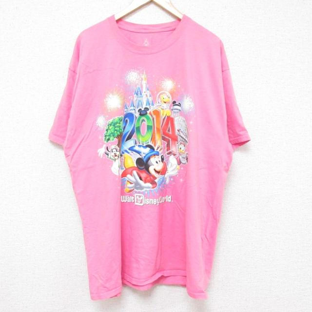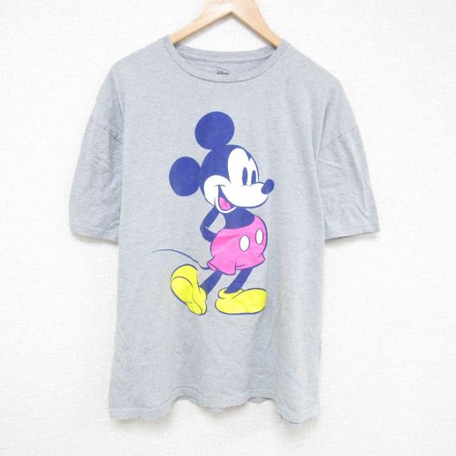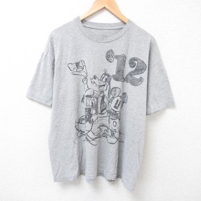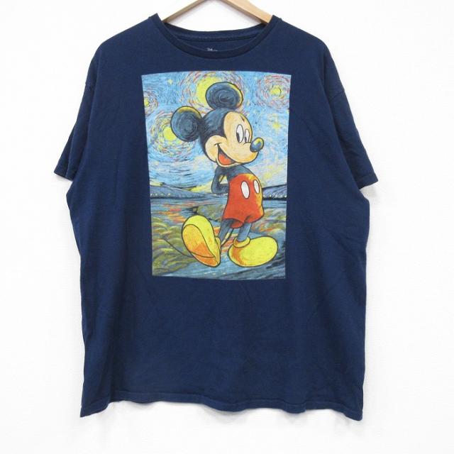 古着 半袖 Tシャツ メンズ ディズニー DISNEY ミッキー MICKEY MOUSE グーフィー 大きいサイズ コットン クルーネック 紺 ネイ 中古 古着