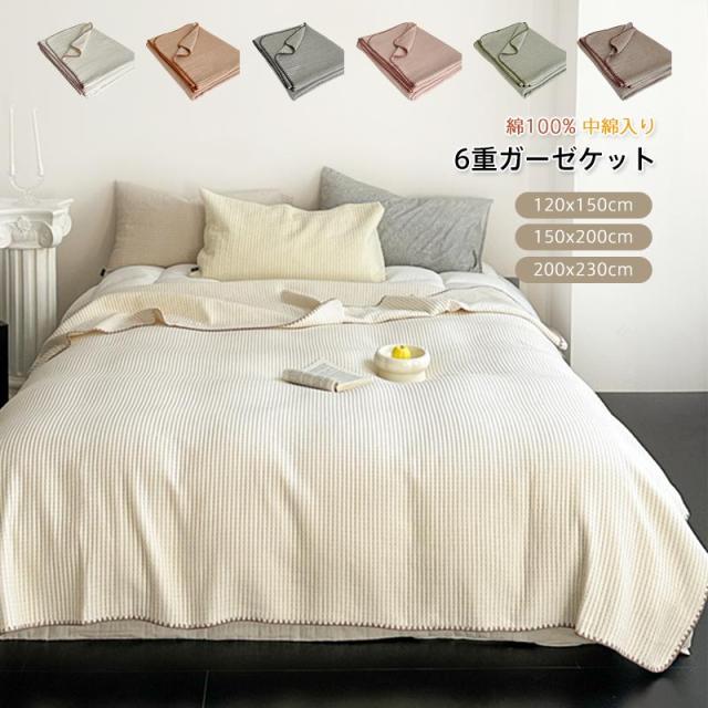 6重 ガーゼケット タオルケット セミシングル シングル ダブル 肌掛け 綿100% ガーゼ 掛け やわらか肌触り 通気性 吸水性 コットン 夏布団 バッグ付き 洗える 春夏新作 送料無料 120×150cm
