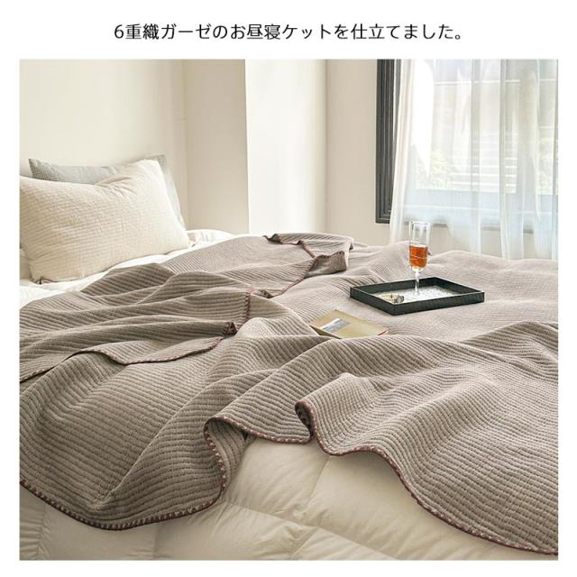 100%綿を使い、ふんわりやわらかな6重織のガーゼケットに仕立てました。