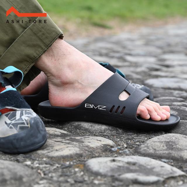 お家でも足音静か。サンダルとしての使用シーンを考慮し、耐久性を持ちながら、適度な柔軟性と反発性を兼ね備えた専用素材EVAを採用。足が自由に動きながら、立方骨をしっかりサポートするBMZならではの設計を可能にしました。