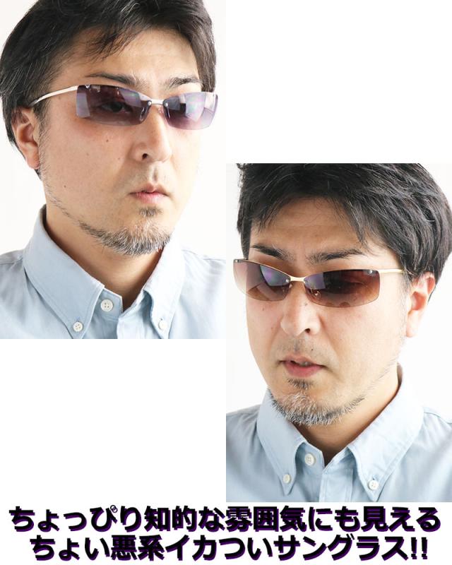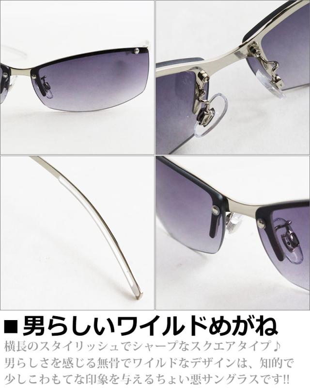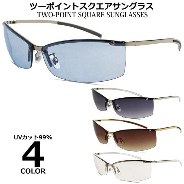 ツーポイント スクエア サングラス ハーフリムフレーム 強面 ちょい悪 チョイ悪 ヤンキーめがね 兄貴 悪 ホスト オラオラ メタルフレーム メンズ レディース