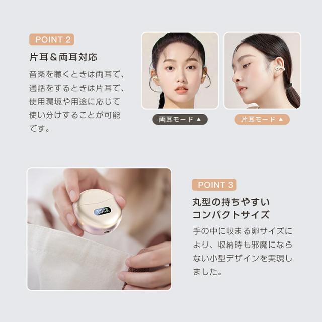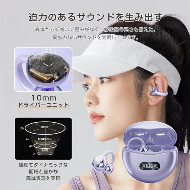 - 耳を塞がないので長時間快適。周囲の音も聞こえるため、散歩や通勤時に安心です。