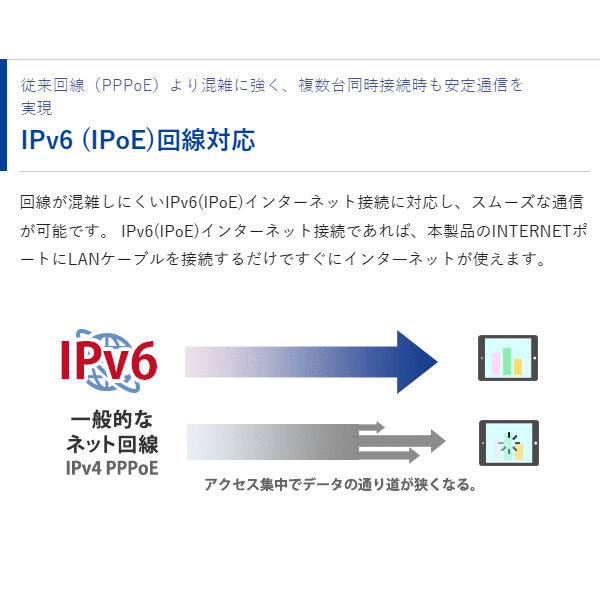 IPv6(IPoE)対応 Wi-Fi ギガビットルーター。