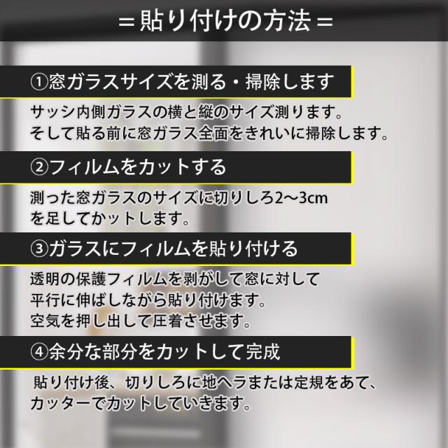 【用途】※UVカットや熱の侵入を防ぐ効果があります。※明るさを保ちつつ目隠し効果が抜群です。※ガラス飛散防止:台風や地震など発生する際、窓ガラスが割れても破片が飛び散らない怪我を防ぐ事ができます。