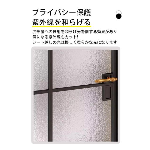 【製品仕様】名称:バンプガラス風目隠し・断熱・UVカットガラスフィルム;寸法:幅80cmx長さ200cm;材質:PVC