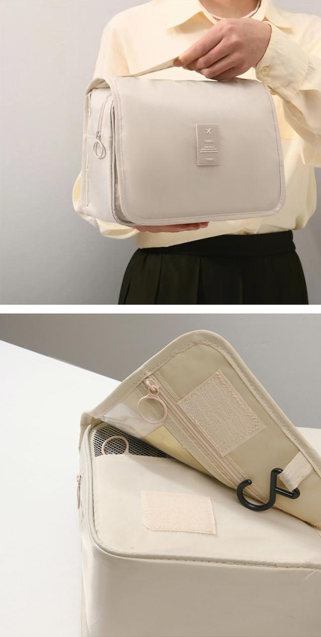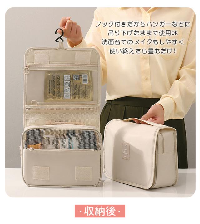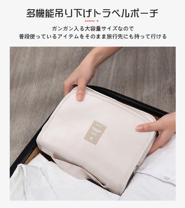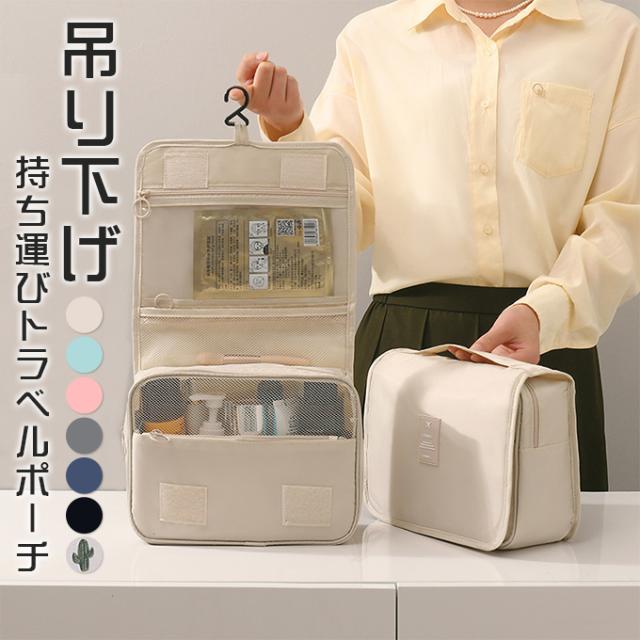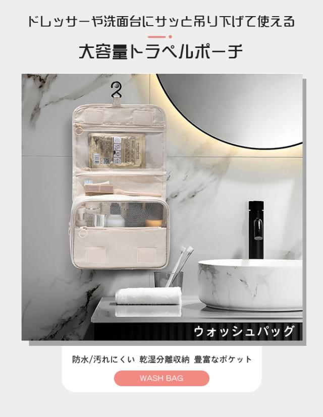 トラベルポーチ 吊り下げ 洗面用具 メイクポーチ コスメポーチ 化粧ポーチ 大容量 持ち運び 韓国風 コンパクト 縦 旅行 多機能 ブラシ入れ付き 仕切り レディース ポーチ トラベル 出張 手提げ フック 大きめ 乾湿両用