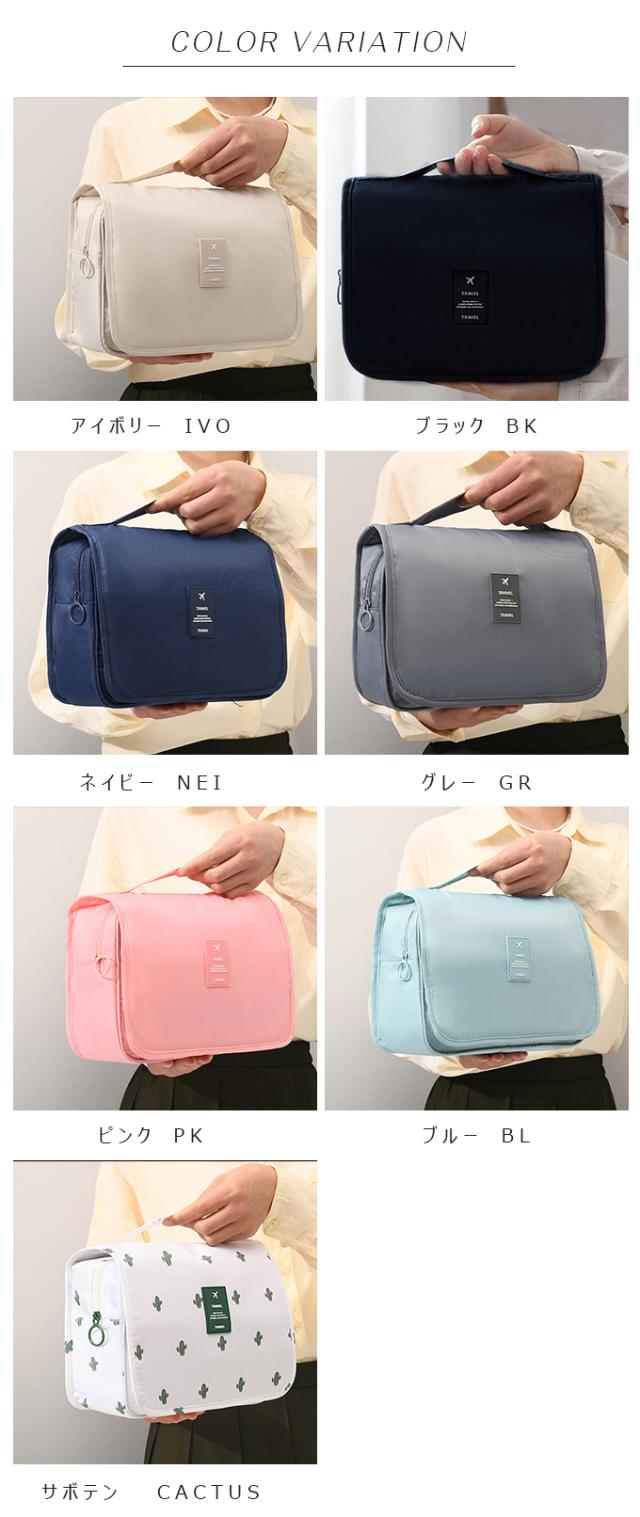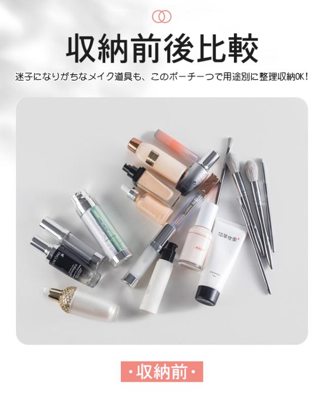 | コメント | いろんなパターンのポケットがついているので、ポーチ内で分けて収納できます。 収納時は薄くコンパクトですが、たくさん収納できる大容量ポーチでとても便利です。 大きいポケットはゴムベルト付きで安心! 吊り下げ可能なフック付きで実用性を更にUP! ※モニター環境により多少色合いが異なりますので、予めご了承くださいませ。 |