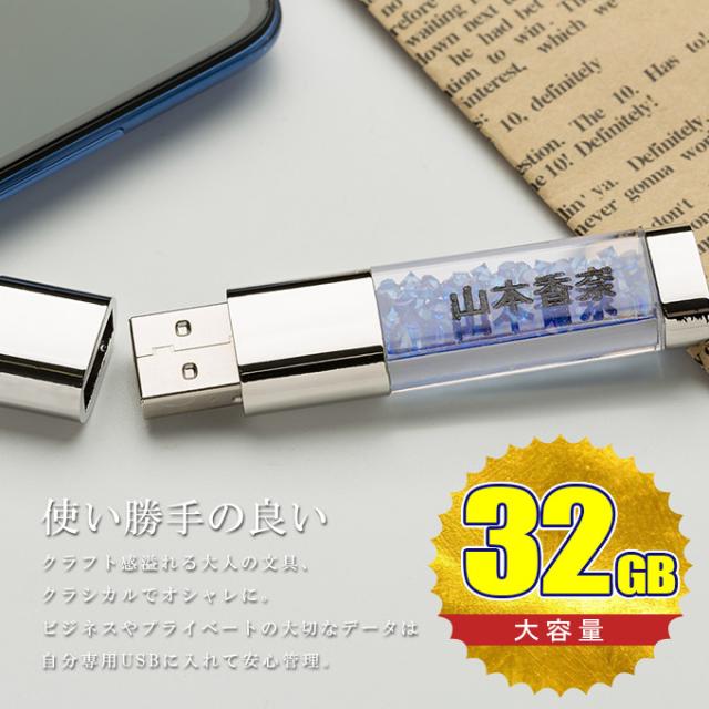 バレンタイン 名入れ無料 32GB USBメモリ きらきらストーン ジュエリー 名前入り ネーム入り 母の日 父の日 入学 卒業 就職 お礼 記念品