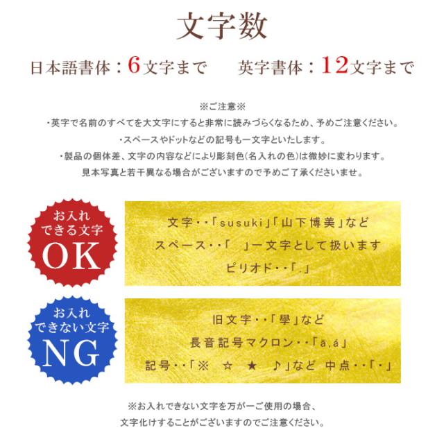 配送時に刻印の際の焦げの残りが本体へ付着してお届けしてしまう場合がございます。
