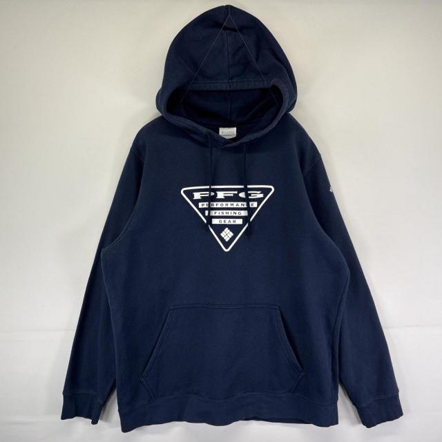 古着 コロンビア Columbia パーカー スウェット PFGロゴプリント プルオーバー フーディ アウトドア L ネイビー メンズ