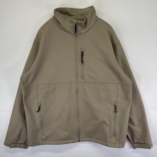 古着 コロンビア Columbia ナイロンジャケット シェルジャケット ワンポイントロゴ フルジップ フリース XL ベージュ系 メンズ