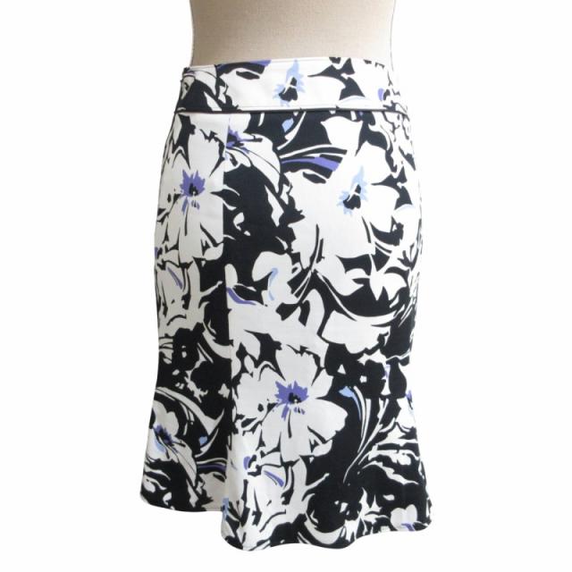 【中古】ケティ KETTY マーメイドスカート 花柄 ひざ丈 2 黒 ブラック 白 マルチカラー ■MET1 0725 レディース