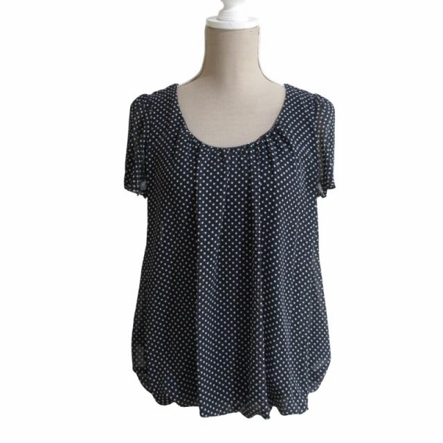 【中古】レイビームス Ray Beams The Way of Chic ブラウス 水玉 ドット柄 ギャザー 半袖 紺 ネイビー ■MET1