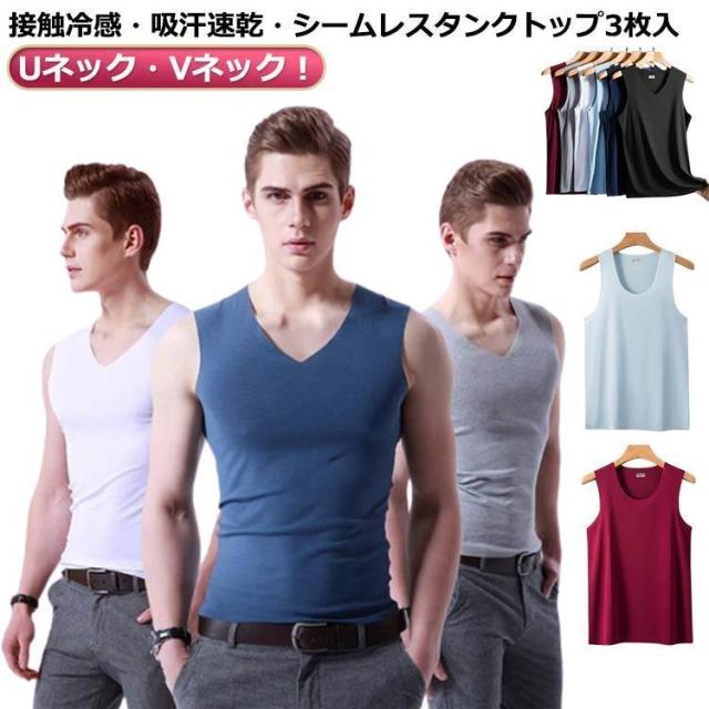 タンクトップ 速乾 冷感 インナー シームレス メンズ 接触冷感 涼しい インナーシャツ 暑さ対策 スポーツ 3枚入 無縫製 薄手 タンクトップ ス