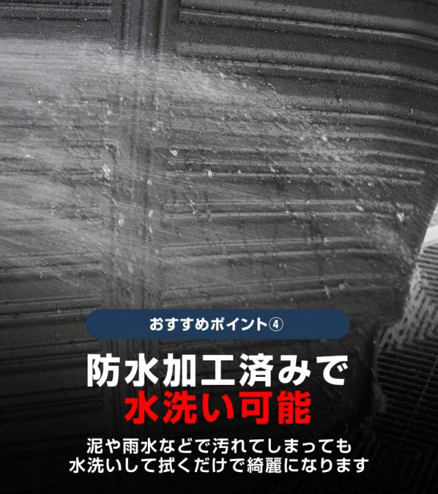 フロア(運転席・助手席・後部座席)からラゲッジスペース、セカンドシート背面まで、車内全体をしっかりと保護します。