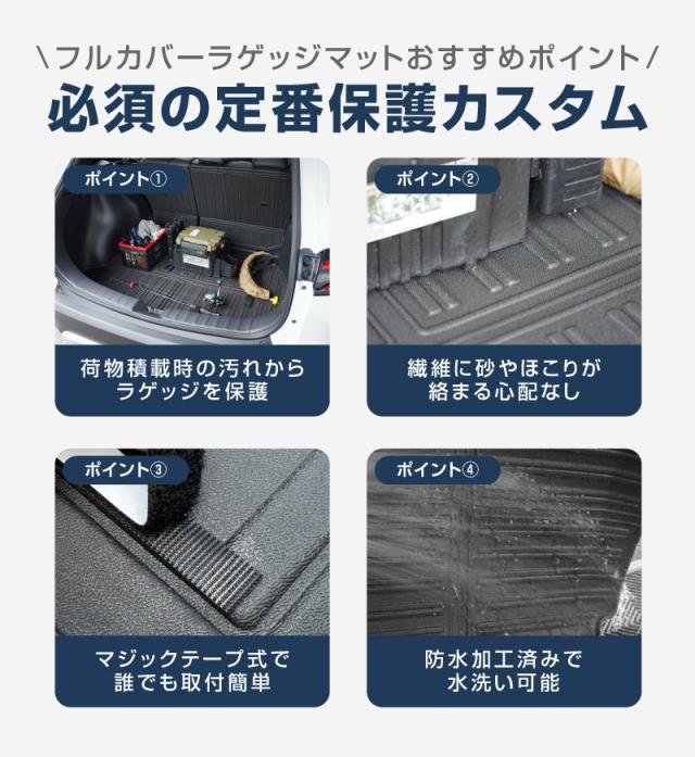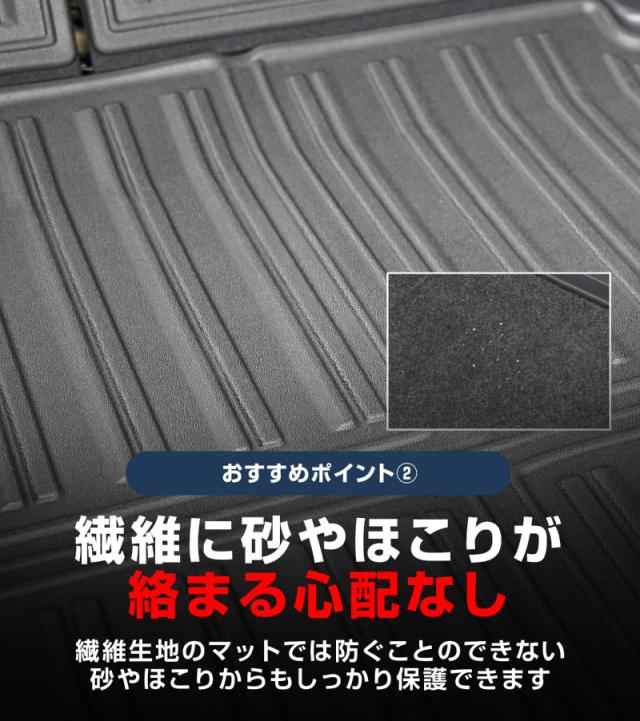 ラゲッジやシートの形状にしっかり沿う5ピース構成で、シートの可動にも柔軟に対応します。