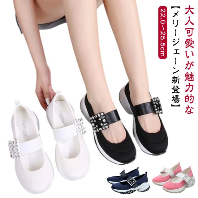 キラキラ 脚長 ビジュー パンプス 厚底 スニーカー パンプス 厚底スニーカー きらきら レディーススニーカー 黒 おしゃれ ビジュースニーカー クリスタルバックルスニーカー メリージェーン ストレッチ 楽ちん