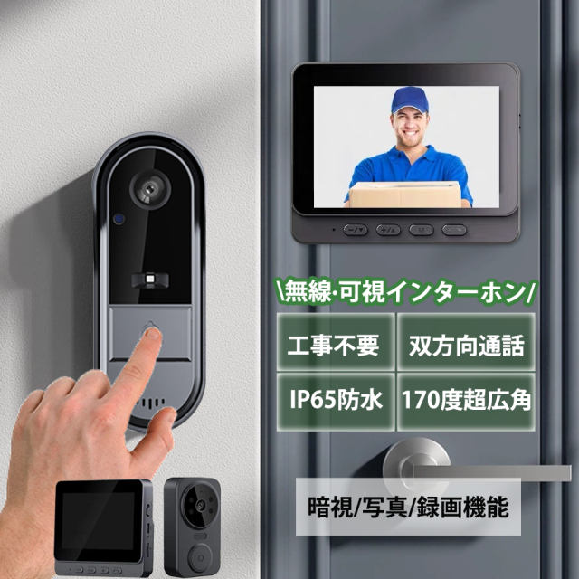 インターホン 日本語の説明書 ワイヤレス ドアホン カメラ付き モニター付き テレビドアホン 工事不要 双方向通話 録画 暗視ドアホン USB充電 玄関チャイム 人気 安心保証 父の日 母の日