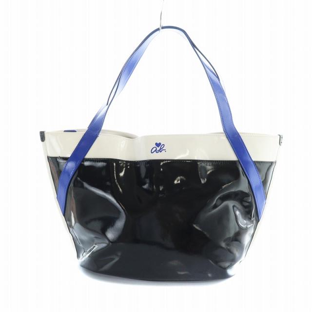 【中古】アニエスベー agnes b. トートバッグ ハンド PVC ロゴ 白 ホワイト 青 ブルー ■GY18