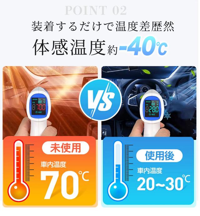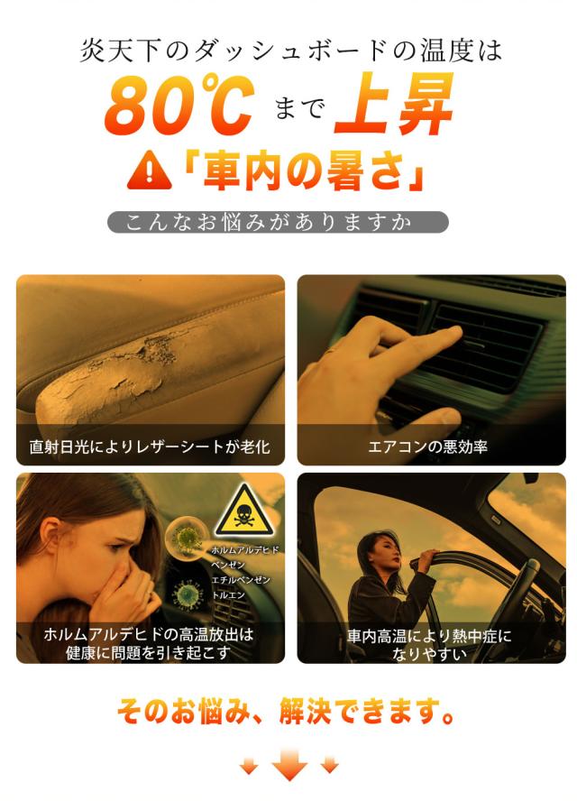 99%の有害な紫外線を遮断することもでき、快適な車内空間を実現します。そして、駐車時大事な愛車を太陽光による損傷やハンドル焼け、ダッシュボードなどの樹脂部分の日焼けから守り、内装の劣化を防止し、使用寿命を延長します。