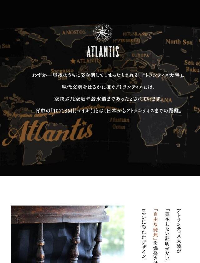 ・背中のプリントは、過去に何度か登場したことのあるとある、伝説上の広大な島「アトランティス大陸」をモチーフにしたもの。