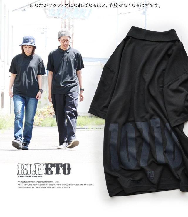【メール便50】 ポロシャツ メンズ レディース 夏 涼しい 機能素材 ドライ UVカット 吸汗 伸縮性 プリント ゆったり すっきり ボックスシルエット お尻 体系 カバー 大人 カジュアル パティ BLUETO ブルート