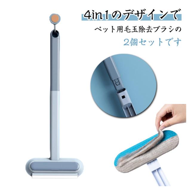 抜け毛取りブラシ 掃除ブラシ 4in1 多機能 猫の毛取り 毛玉取り 窓掃除道具 ガラス掃除 猫用 犬用 抜け毛クリーナー 猫毛取りブラシ 静電気除去 乾湿両用 繰り返し使える 長さ調節可能 ペット毛対応 家庭用 衣類/カーペット/布団/シート/ソファー 送料無料