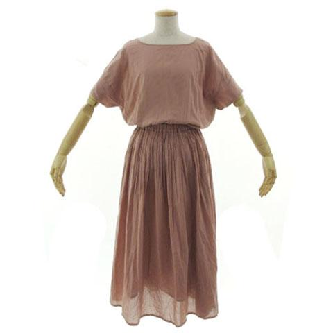 【中古】URBAN RESEARCH DOORS コットンボイルギャザーワンピース DR25-26M108 ロング丈 ウエストゴム ピンク系 M