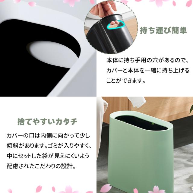 【スリム ゴミ箱】 高さ:30cm、 幅:15 cm、 長さ:32.3cm。 12Lの家庭用ゴミを簡単に収納できます。スリムなゴミ箱は、狭い廊下や狭いコーナー、家具の間などの狭い場所に最適で、さまざまな狭いスペースの合理的な使用。